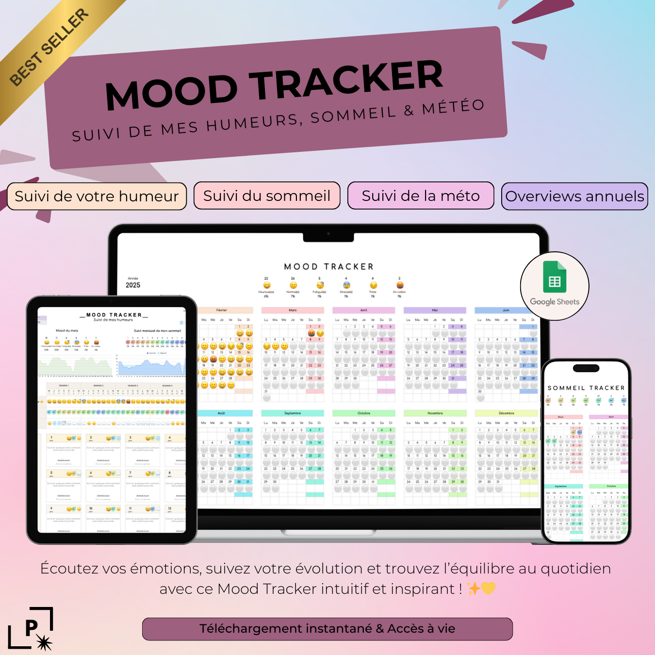 Le Mood Tracker te permet de noter ton humeur jour après jour, d’identifier ce qui l’influence et d’observer son évolution à travers des graphiques et des analyses. Un outil essentiel pour mieux te comprendre et ajuster ton quotidien ! ✨🧠