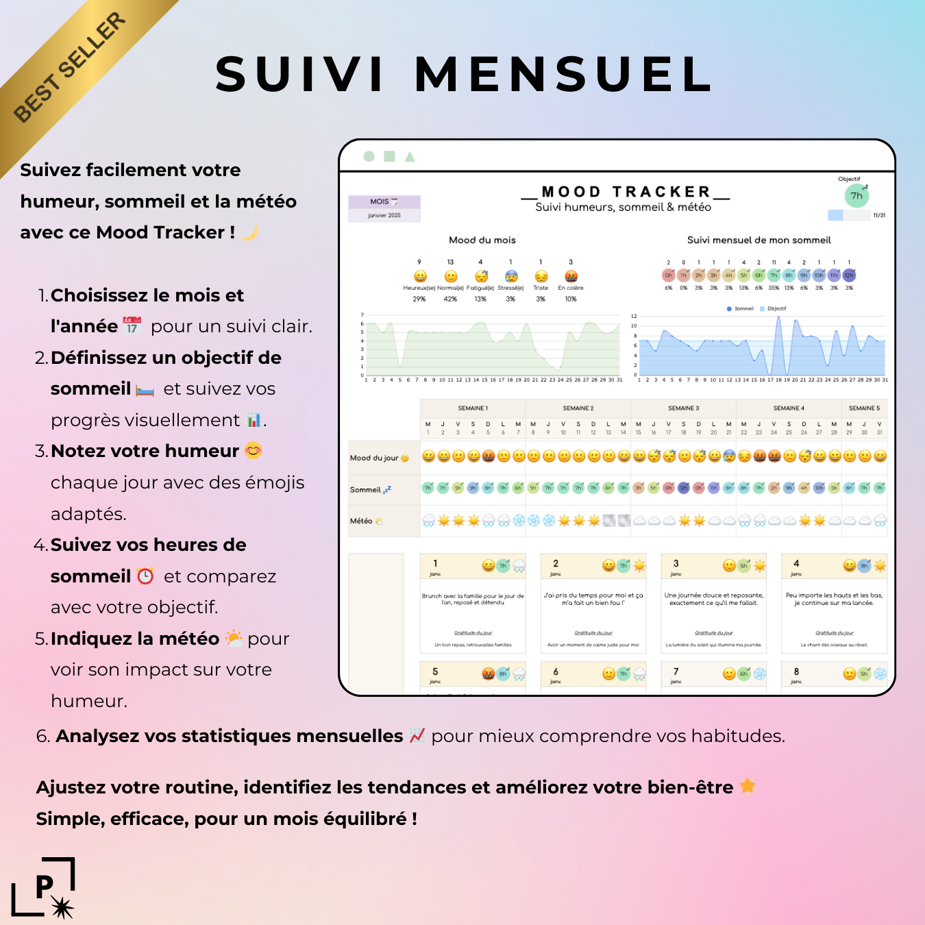 Avec ce pack, booste ton quotidien en combinant le suivi de tes habitudes et l’analyse de ton humeur pour rester motivé(e) et équilibré(e) au fil du temps ! 🚀📅